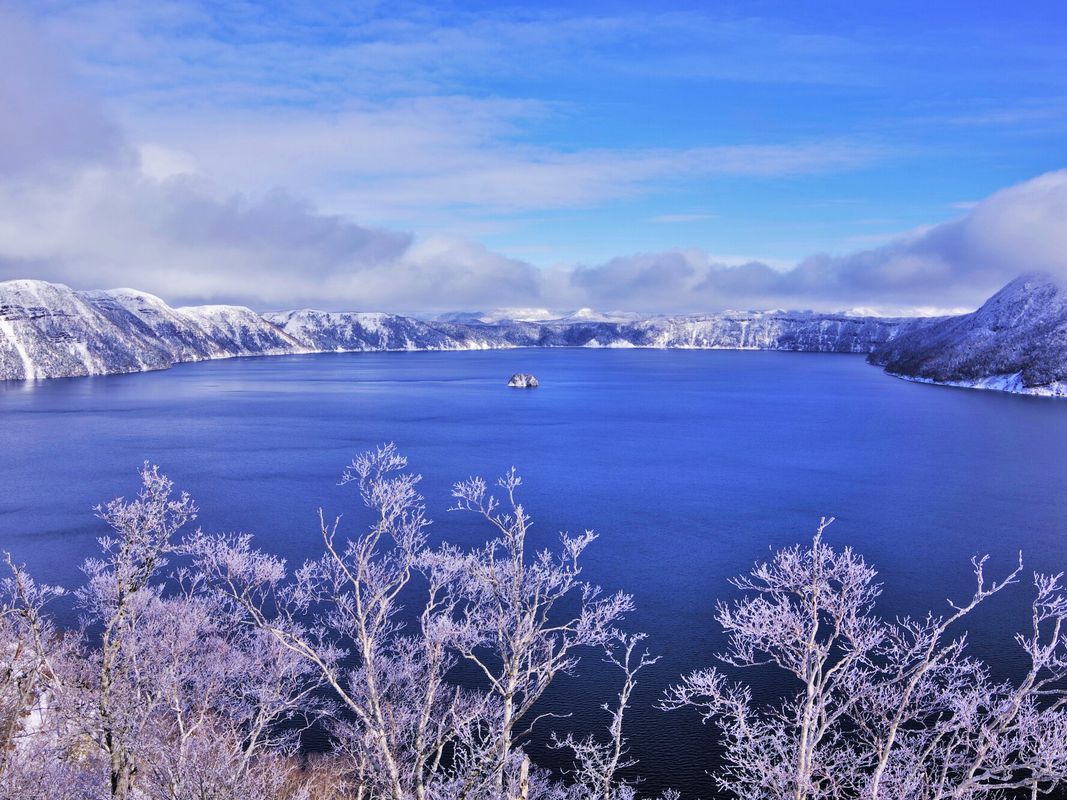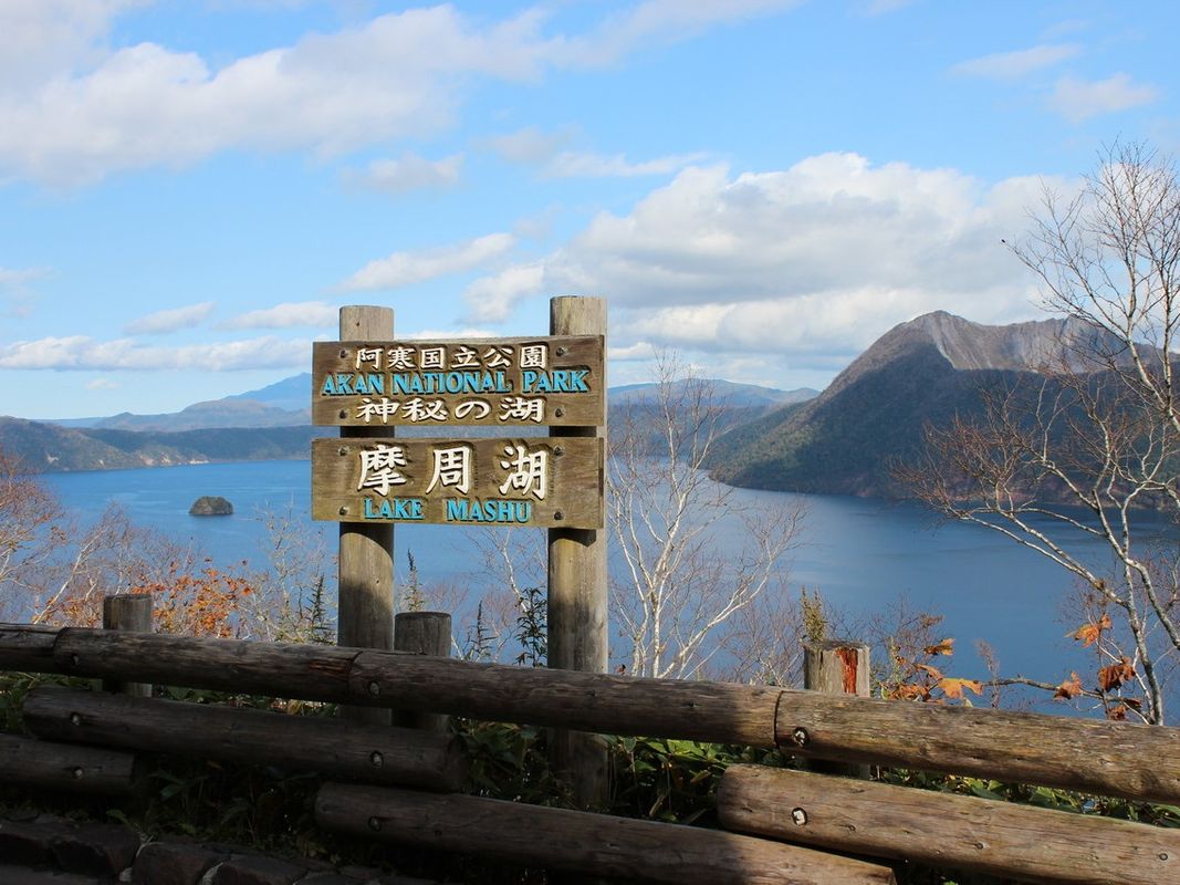 「霧の摩周湖」とも呼ばれる神秘的な湖。天気が良いと摩周ブルーとも称される深い青色の湖面が姿を現すことも。