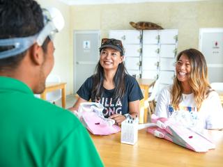 プログラム申込書へ記入した後は、器材合わせ。丁寧にレクチャーいたしますので、初心者の方でも安心です。