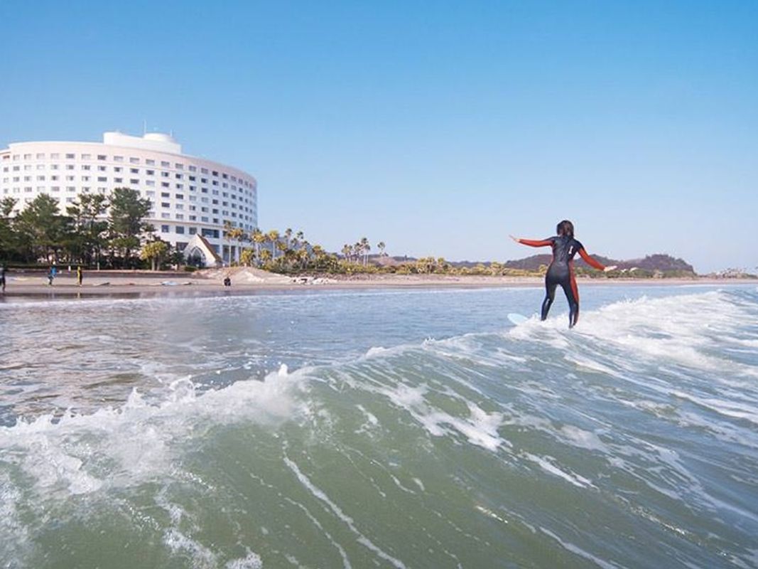 青く美しい海岸線が広がる宮崎県の日南海岸でサーフィンに挑戦!ボードやウエットスーツはレンタル無料ですので、気軽に体験ができます。認定インストラクターが丁寧に指導いたしますので、未経験者の方でも安心してご参加ください。