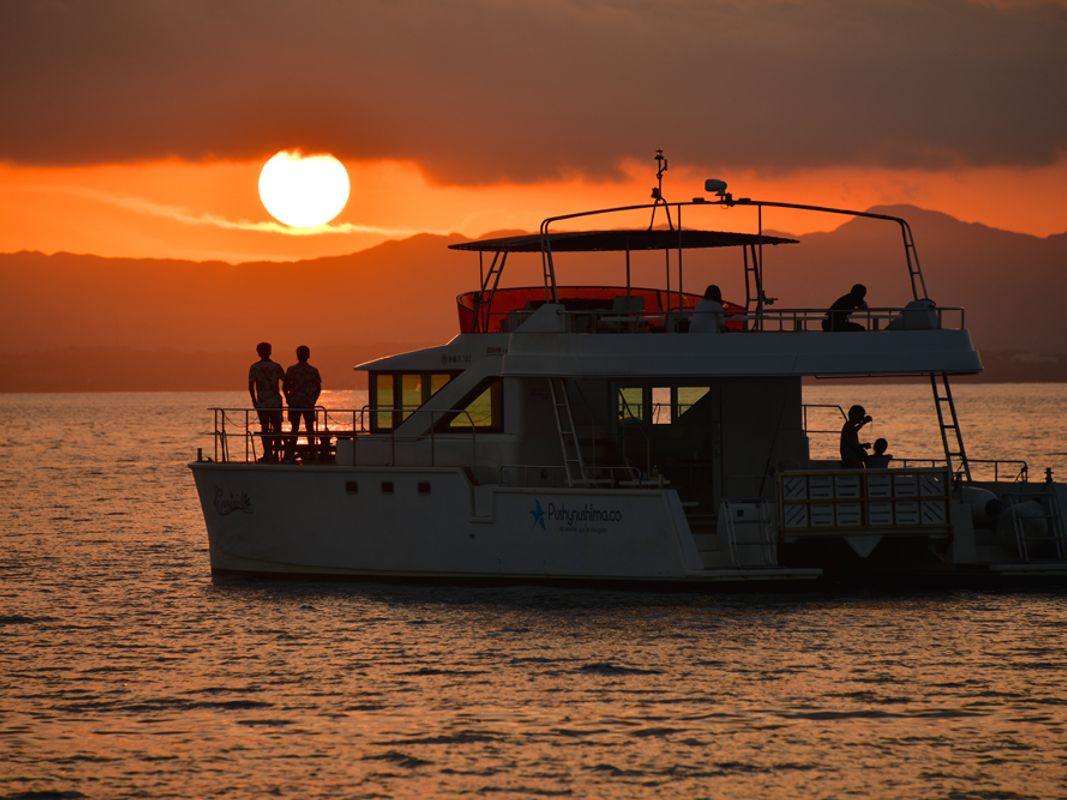サンセットクルーズ 揺れの少ない大型カタマラン船を使用!黄金色の感動マジックアワー<0~2歳無料/石垣島>