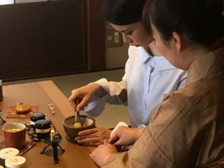 茶会にも使われる静かな和空間で、作った香を実際に体験します。