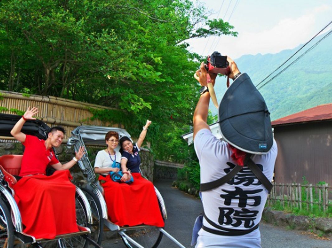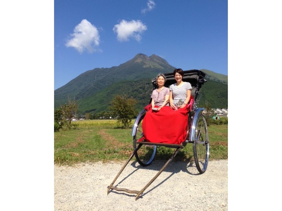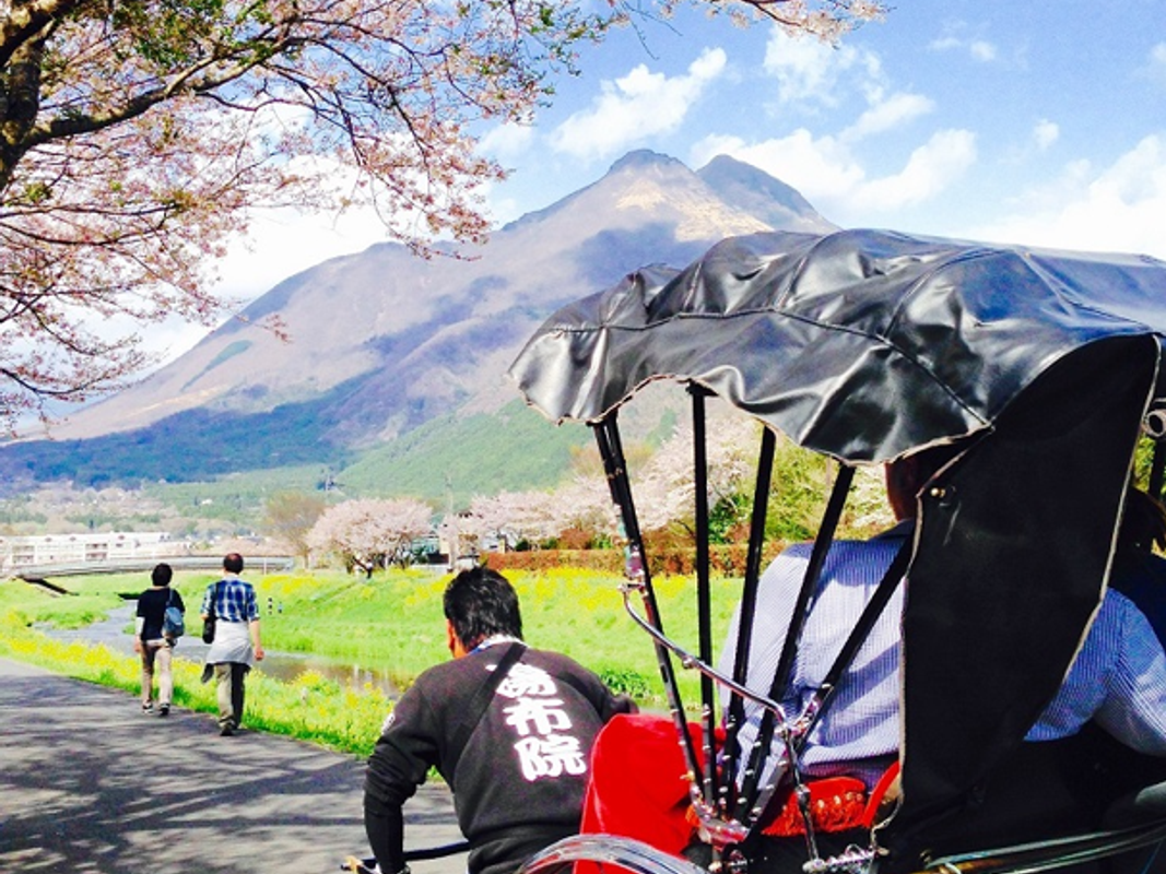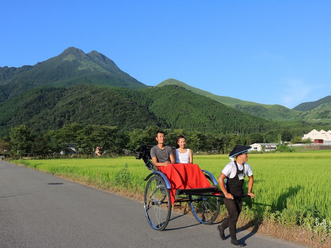 のどかな街並みや田園風景の残る湯布院の町並みを人力車でめぐる観光ツアー。金鱗湖へ向かう30分コース、のどかな街並みを周る90分コース、寺社仏閣を拝観できる120分コースと3コースをご用意しています。由布岳を眺めながらの人力車観光は、爽快感抜群!町に詳しい元気な俥夫が写真撮影とガイドを交えながら、楽しく観光スポットを一巡りします。