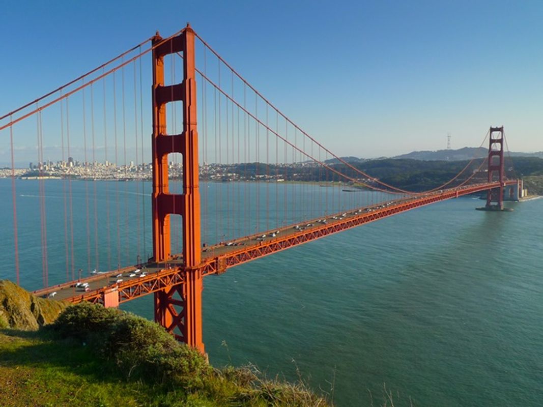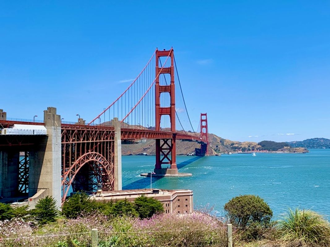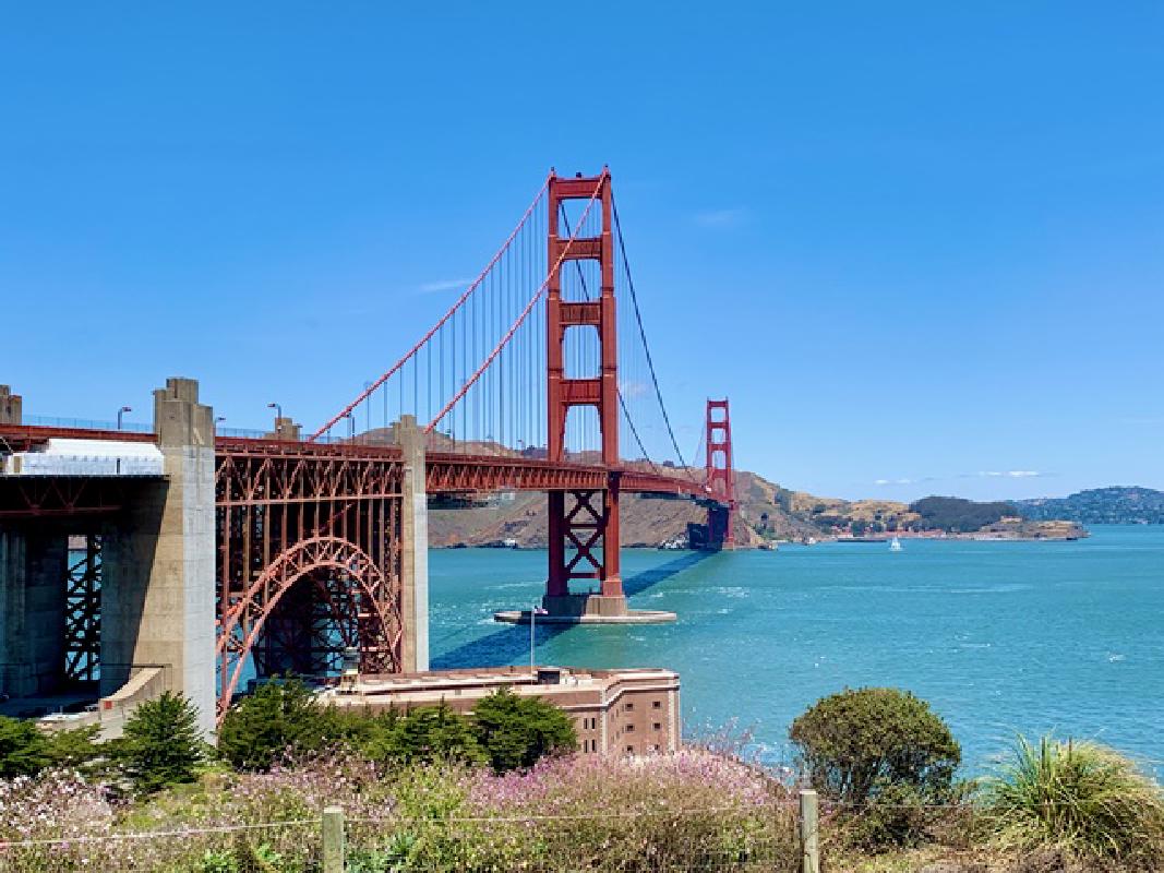 ゴールデンゲート海峡にかかるつり橋で、サンフランシスコを代表する観光スポット。日本の瀬戸大橋と姉妹橋関係にあり、記念碑もあるんですよ。大きな朱色の橋は大迫力。サンフランシスコ観光には外せません。