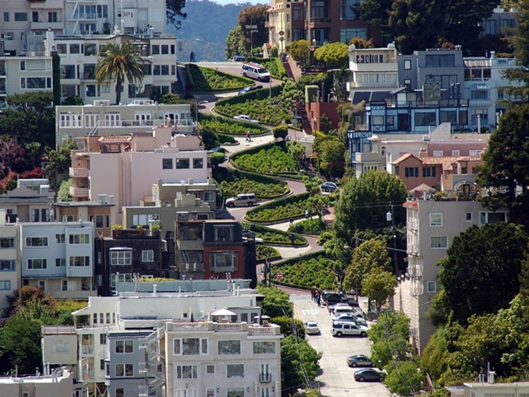世界一曲がりくねっている坂道。サンフランシスコは坂が多いことで知られていますが、この通りは尋常ではありません。傾斜がきつく、まっすぐの道だと車の事故が増えると予測されたため、わざとくねくねの道にしたのだとか。