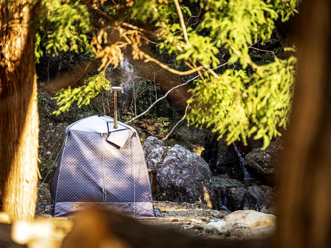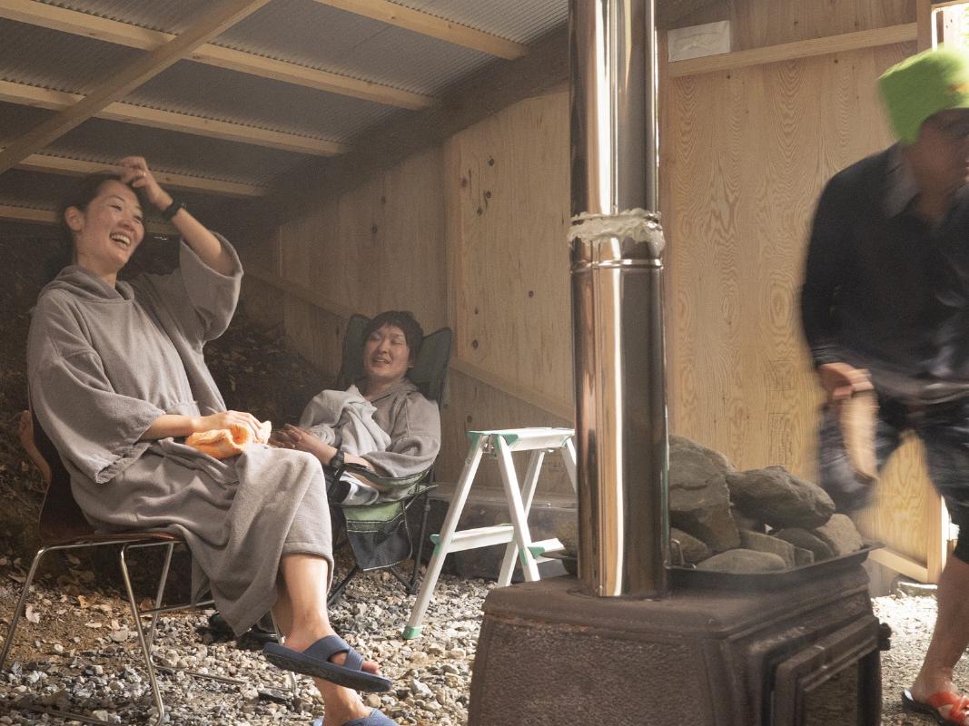 滝の近くに到着したら「着替え室」で装束に着替えます。男性は、ふんどし、はちまきを身に着け、女性は白衣もしくは甚平・はちまきを身に着けます。