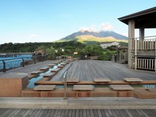 全長約100mの日本最大級の足湯があり、目の前に広がる錦江湾や桜島の景色を眺めながら旅の疲れを癒しましょう。