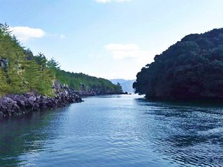 日本武尊(ヤマトタケルノミコト)が熊襲征伐の時、軍船から上陸された所との伝説があります。約1㎞が遊歩道となっており若尊(わかみこ)神社が祭られています。休日には釣り人も多く見かけられます。