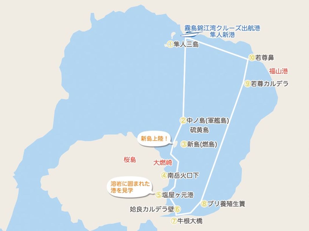 桜島や霧島連山の雄大な景観、火山活動が生み出した湾内の島々の風景をお楽しみください。