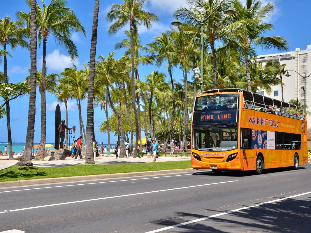 ハワイののんびりした気候には、トロリーがよく似合います。ワイキキトロリーでは4つの路線をご用意して、皆様をお待ちしております。観光客や地元ロコにも愛される色々な場所へ気軽に足を運ぶことができます。海に向かってそびえ立つ山々、歴史的建造物、ショッピングや話題のレストランまで、自分だけの旅行プランを作りましょう! レッド、グリーン、ピンク、ブルー、4種類の路線を運行。人気のレストランを巡るローカルダイニング&ダイヤモンドヘッドコースも運行を開始!30以上の停留所は、文字通りハワイの風を感じながらの、すばらしい経験を与えてくれ、ハワイのことを知り尽くしたドライバーのガイドはとっても楽しく、あなたのハワイ旅行を一味違った楽しいものにしてくれること、間違いなし!! パラダイスハワイの旅を一緒に楽しみましょう!