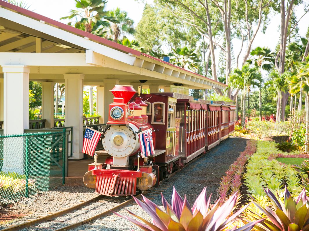 パイナップル農園の中をディーゼル列車が進んでいく、人気のパイナップル列車が付いたプラン。コオラウ山脈やワイアナエ山脈を望むロケーションで、写真スポット満載!南国気分を味わえます。ドールプランテーション後はハレイワタウンでフリータイムをお過ごしください。