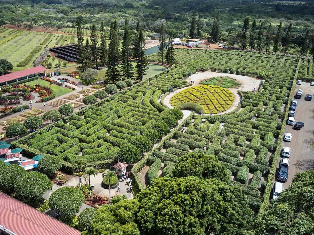 家族みんなで楽しめる世界最大迷路プラン!約9,300㎡の敷地に、全長4kmもある世界最長の迷路があります。ギネスブックにも世界最長として記録。ハイビスカスの垣根で出来ており、花々が咲くきれいなラビリンスが広がります。8か所のチェックポイントでスタンプを集めて、迷路制覇の証明書をもらおう!ドールプランテーション後はハレイワタウンでフリータイムをお過ごしください。