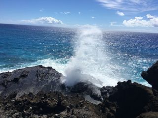 ハロナ潮吹き岩展望台は、オアフ島東海岸にあるハロナ潮吹き岩が間近に見える展望台です。溶岩でできた岩場の穴に海水が流れ込むと10メートルの高さまで潮が吹き上がることもあります。
