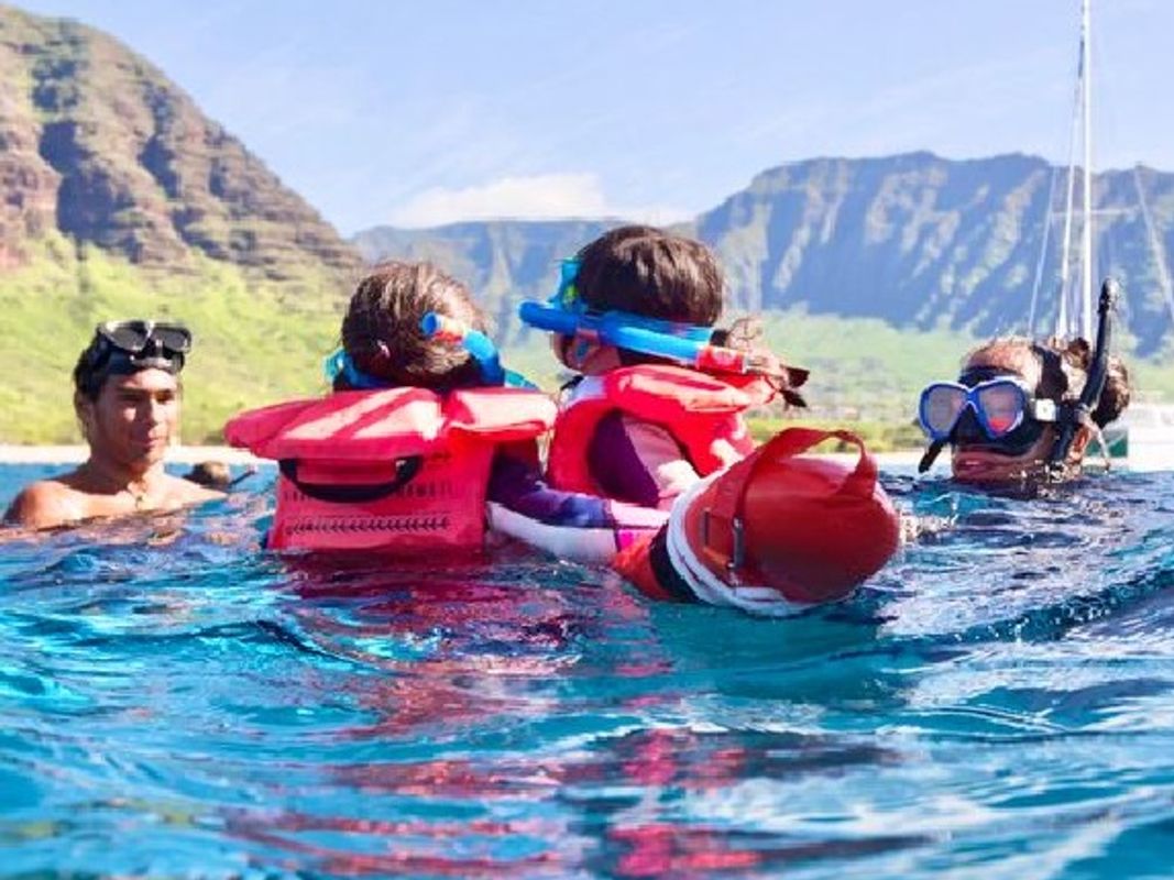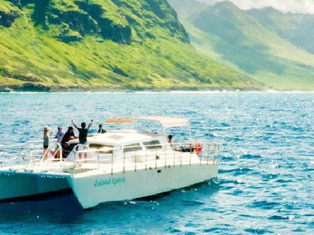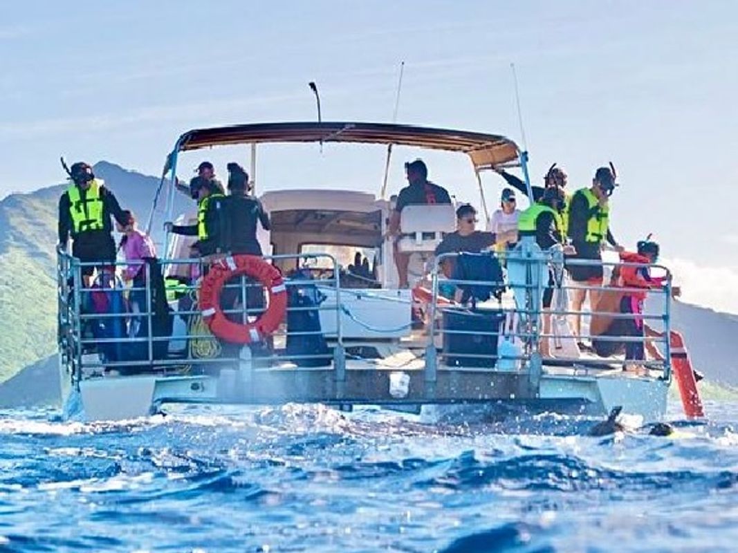 オアフ島の西海岸を揺れの少ないカタマラン船でクルーズしながら野生のイルカと泳ぐ人気ツアー!広々とした40人乗りのカタマラン船を24名までに制限した少人数制。ベテランガイドも一緒なので安心です。ウミガメやハワイのカラフルな熱帯魚にも会えるかも!?少人数制のツアーのため、お早めのご予約がおすすめです!