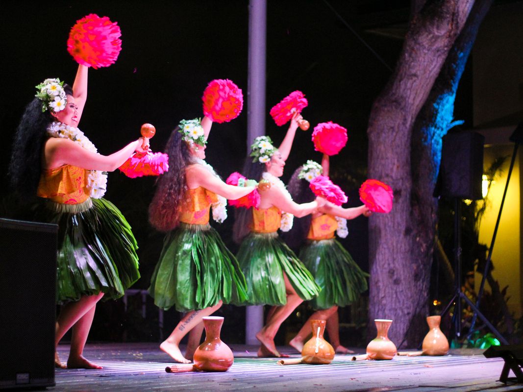 カ・モアナ・ハワイアン・ディナーショーは太平洋の島々にあるダンスや歌、アクティビティを通して、ポリネシア文化を体験していただけます。ゲストはショーが始まる前のお楽しみとしてレイ作り、フラレッスン、ヘッドバンド織りなどが体験できます! ルアウディナーではカルアポークなどの伝統的な料理や、ロミロミサーモンやポイ、ポケなど地元産の食材を使った島風のルアウをお楽しみください。 息を呑むような大迫力のダンスと景色、おいしいディナーを満喫しましょう! ホノルル港を目の前に輝く星空の下、アロハタワーをバックにオアフ島でしか体験できない、ハワイ式宴会「ルアウ」 を体験しましょう♪