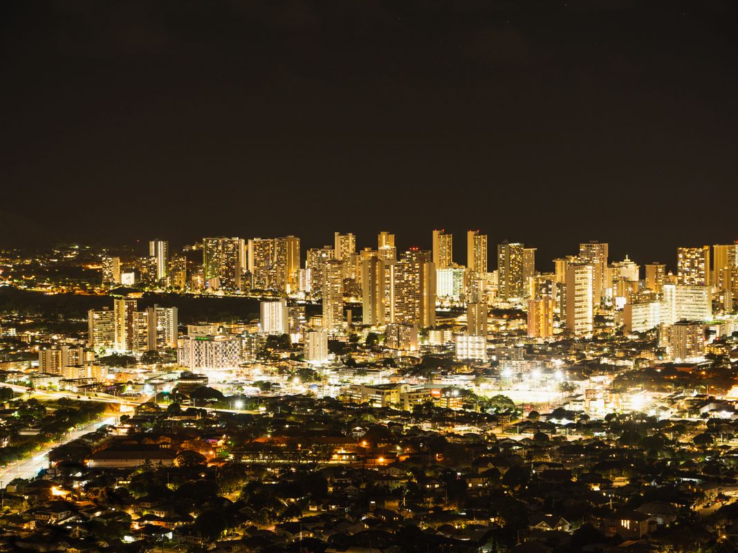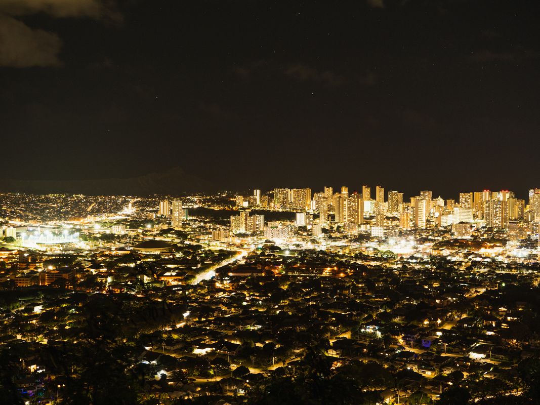 タンタラスの丘からの夜景や、ハワイならではの星空を堪能するツアー!火山の噴火で隆起した「天然のテラス」タンタラスの丘からの夜景はハワイ一♪ハワイ州では色とりどりのネオンサインが禁止されているため、夜景は優しいオレンジ色やゴールドのみ。まるで宝石をちりばめたような輝きを放っています。トロリーやバスではアクセスできないので、オプショナルツアーを申し込むのがおすすめです! 家族やカップル、お友達と、心に残る景色を胸に刻みませんか? 滞在中一度は訪れたいハワイ随一の夜景の名所、タンタラスの丘。宝石をちりばめたようなホノルルのイルミネーションは必見です!