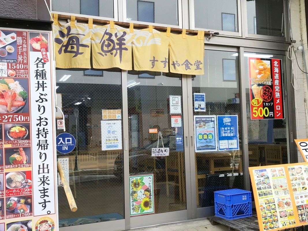 下記からお好きな具を5種類選んで海鮮丼に♪ - かにほぐし - 鮭ほぐし - 真いか - サーモンルイベ - 北海甘えび - ほたて貝 - ねぎとろ - とびっこ - いくら *全ての海鮮丼に、お味噌汁とお新香がつきます。