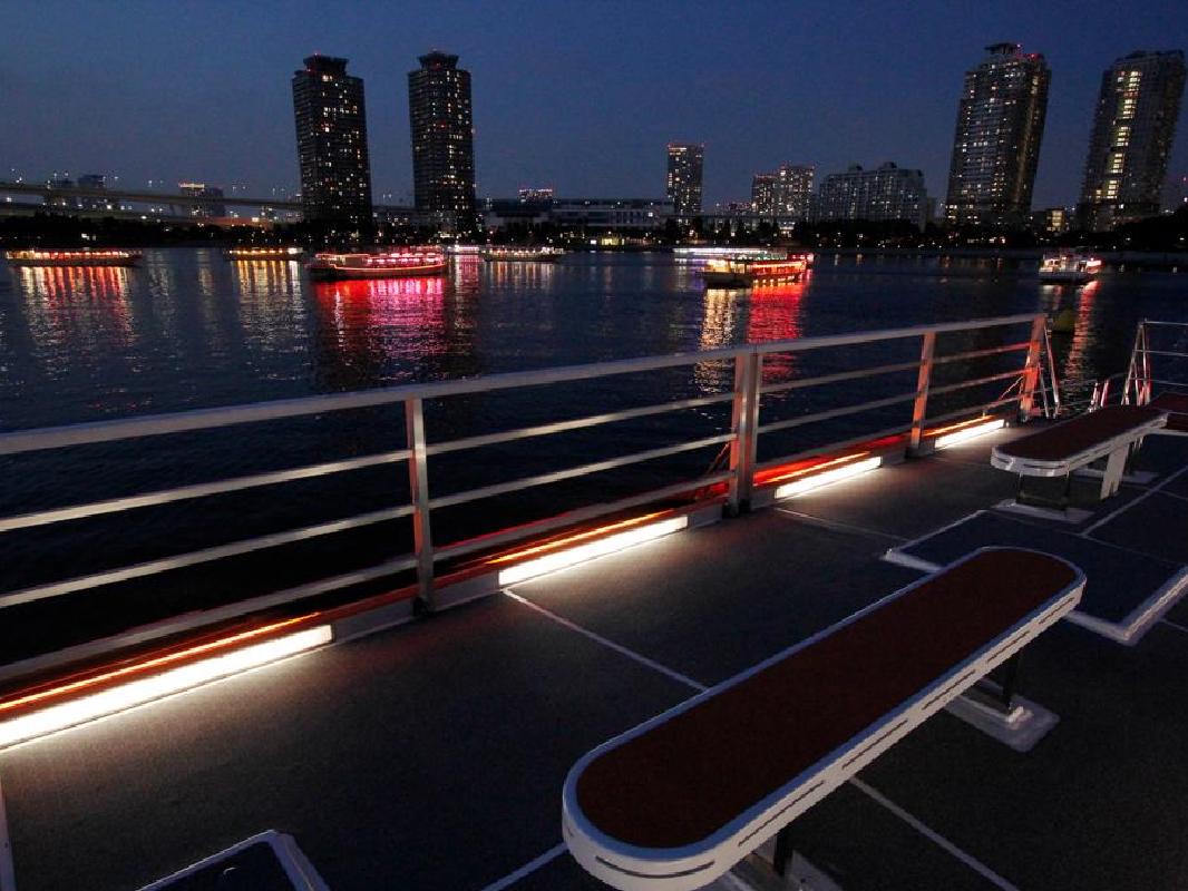 古風な外観の屋形船にゆられながら、思い出に残るクルージングはいかがでしょうか。お台場、レインボーブリッジ、東京スカイツリーなど、東京でしか味わうことのできない素晴らしい夜景を、大江戸の屋形船からご堪能いただけます。船内の座敷でしっとり呑みながら夜景を楽しむも良し、スカイデッキで夜風に当たりながらゴージャスな眺望を味わうも良し、地上で味わうことの出来ない極上体験をお愉しみください。
