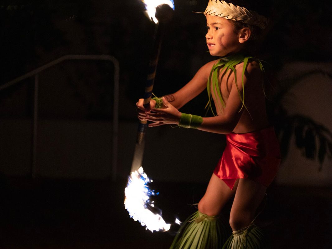 パイナ・ワイキキ・ルアウショーでは、受賞歴のあるポリネシアのミュージシャン、ダンサー、アーティストが出演します。世界ファイヤーナイフチャンピオンを含むアーティストや愛らしいケイキパフォーマーも参加します!