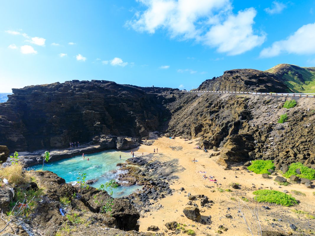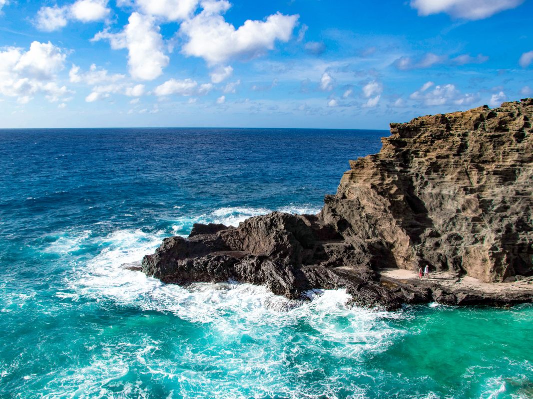 ダイヤモンドヘッドを外から眺め、カハラの街並みを通り抜け東海岸に向かいます。有名なココヘッドトレイルやハナウマ湾などを眺めていると目の前に雄大な海が広がります。