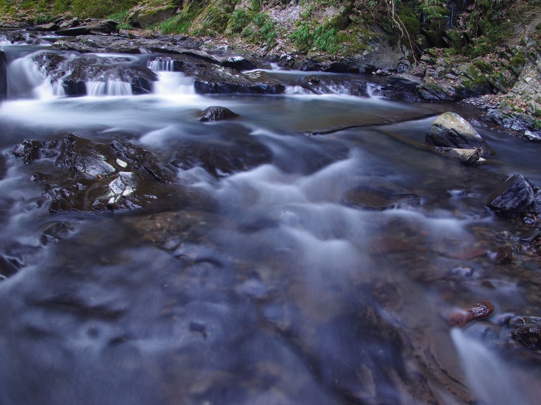 小田川と田の原川の合流点に位置する「夫婦滝」。女滝は村娘が身を投げた場所、男滝は侍が吸い込まれた場所という言い伝えが残されていることから、縁結びの滝として知られています。