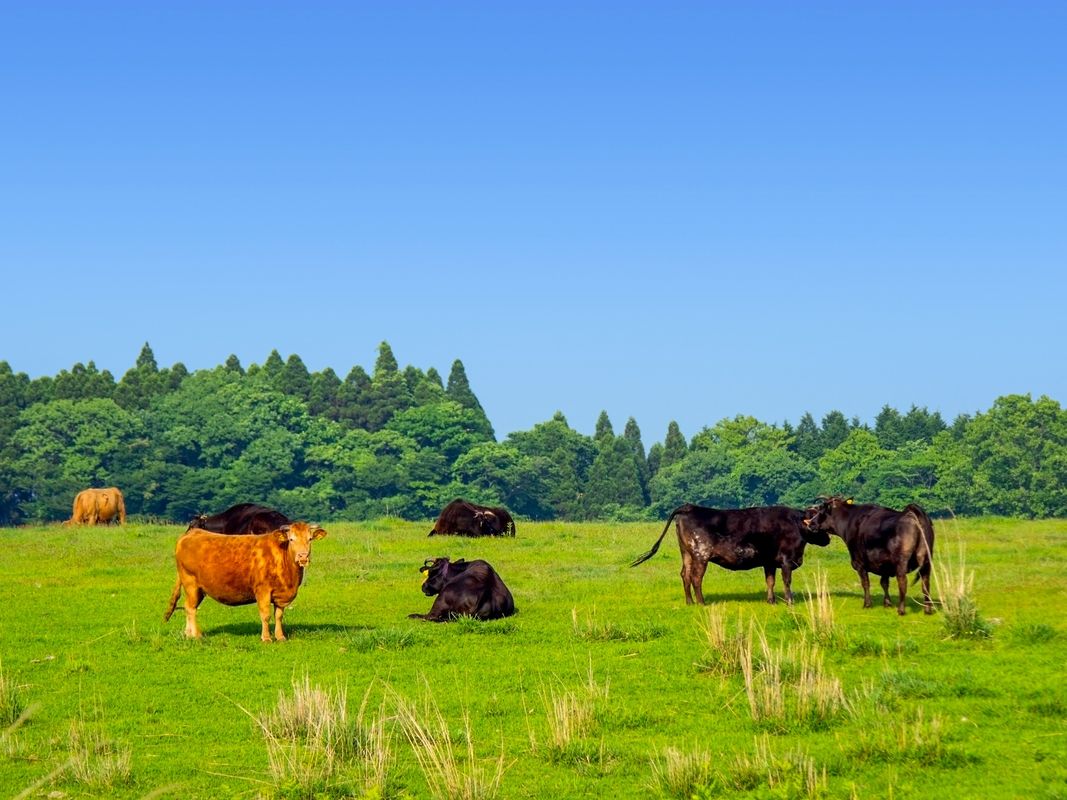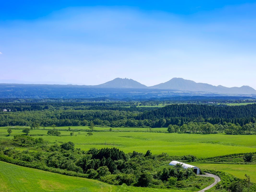 南小国町の東端に位置する標高約800メートルの高原地帯。一面大草原が広がっており、南には阿蘇五岳、北には九重連山を望むことができます。春は新緑、秋には紅葉やススキと、訪れるたびに移り変わる景色をご覧いただけます。