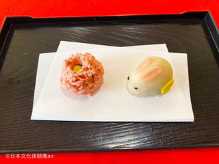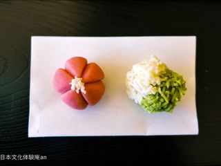 おひとり様2個、季節に合わせた和菓子を作っていただきます。 京都の老舗のあんこ屋さんの白いんげん豆を使用した白あんと国産小豆を使用したこしあんで、本格的な和菓子作りをお楽しみください。