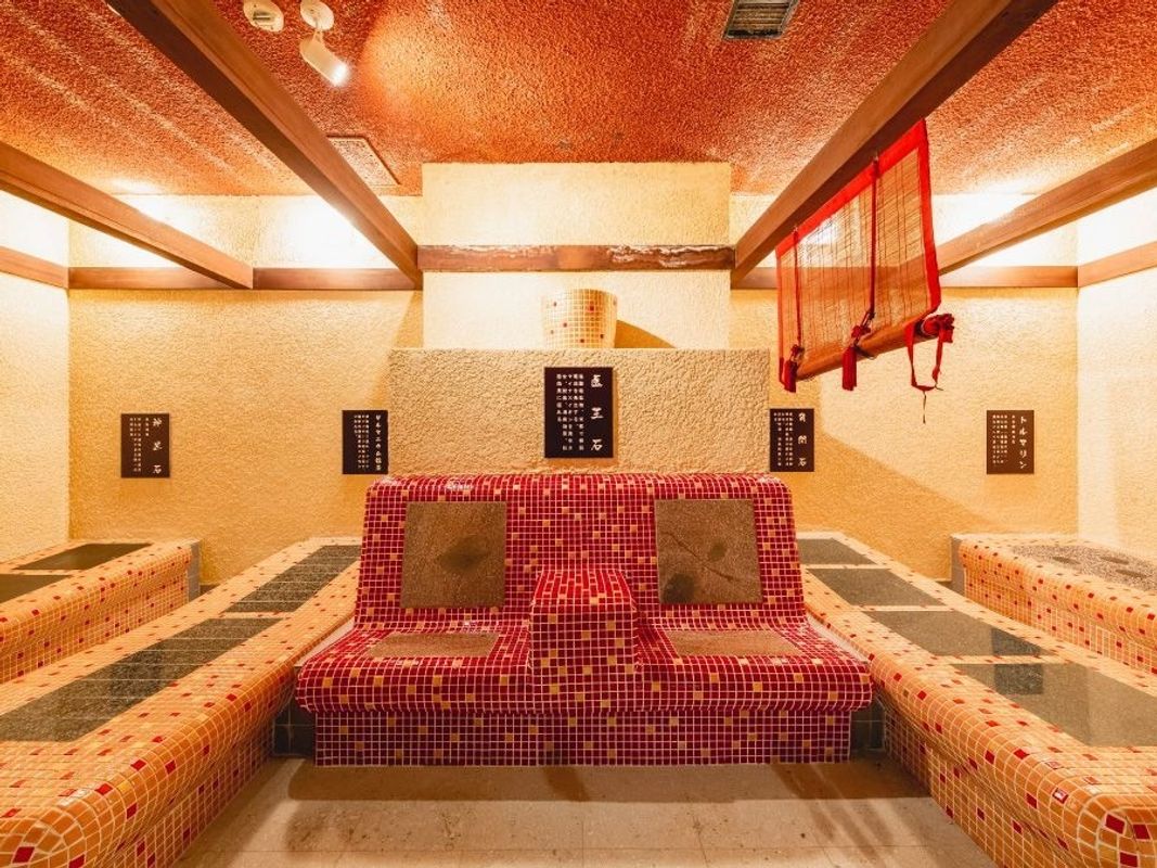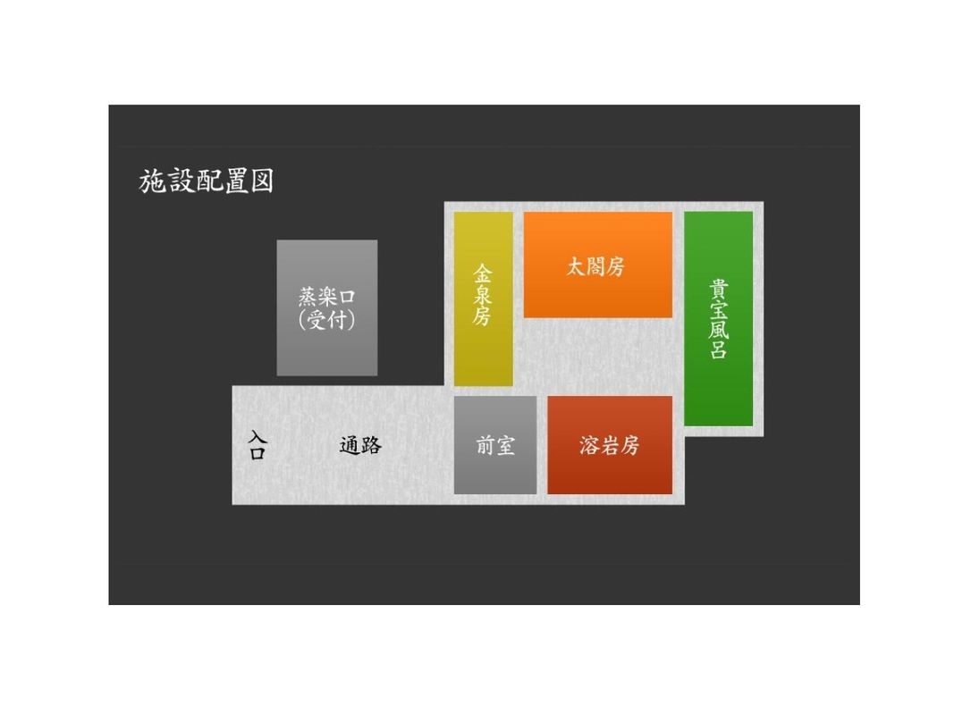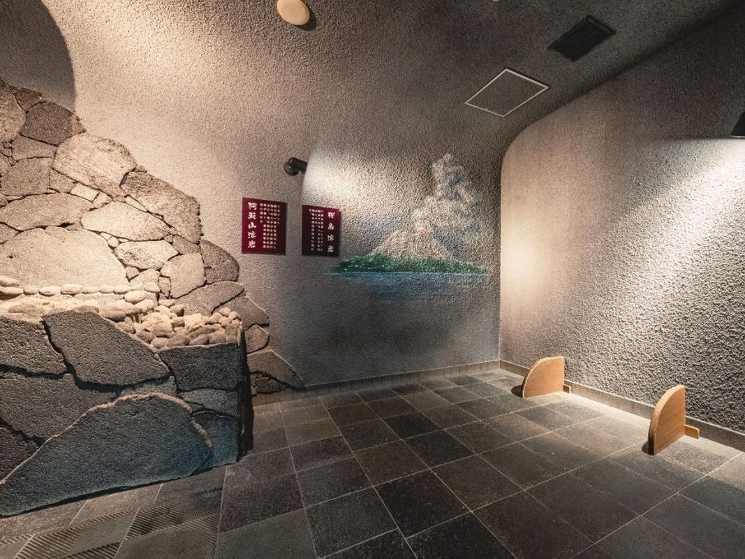 有料岩盤浴「太閤夢蒸楽」は、天然温泉のミストを併用するという、当館ならではの岩盤浴の特徴を生かしつつ、無料岩盤浴に使用されていない多種多様な岩盤を使用しております。 内部は、それぞれ異なった効能を持つ稀少な5種類の鉱石、火成岩を個々に楽しめる太閤房、桜島と阿蘇山の溶岩を用いた溶岩房、今注目の「パワーストーン」や貴宝石をを用いた太閤貴宝風呂、金泉と銀泉の混合泉のミストと⻨飯石の岩盤座を用いた金泉の4つの部屋に分かれております。 また銀泉の足湯につかりながら、約1000匹のドクターフィッシュがあなたの足をつるつるに!不思議な浸かり心地をご体験いただけます。