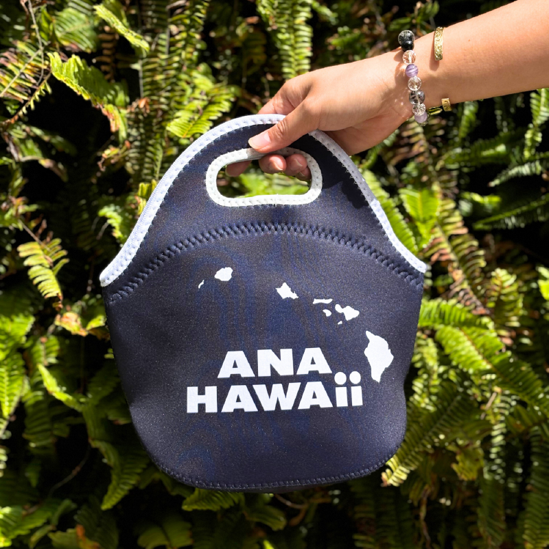 ウェットスーツ素材で軽くて丈夫。ハワイ諸島がプリントされたANA ハワイオリジナルデザイン。ハワイ旅行のお土産やアウトドア、普段使いにもとても便利。 お弁当やドリンク(目安4本)を入れるのにぴったりな保冷バックです。 サイズ:幅 28cm x 高さ 28cm x 奥行 15cm