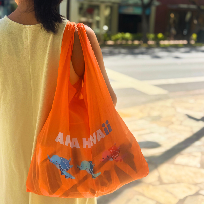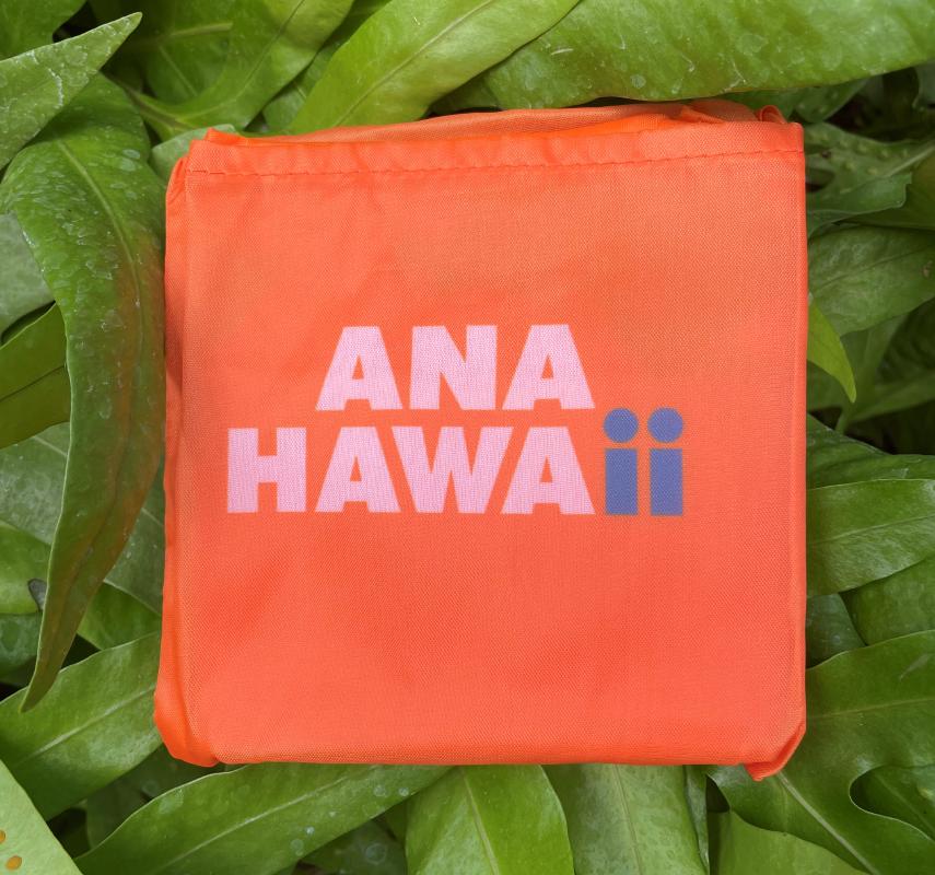 ★単品・オレンジ★ ハワイ旅行のお土産にも、普段のお買い物にも大活躍! ANAのフライングホヌがプリントされたオレンジのナイロンバッグです。 軽くて丈夫なナイロン素材を使用しており、何度でも繰り返し使える環境にやさしいアイテム。 折りたたんでコンパクトに持ち運べるので、旅先や日常のバッグにひとつ入れておくととても便利です♪ サイズ:高さ 58cm x 幅 40cm