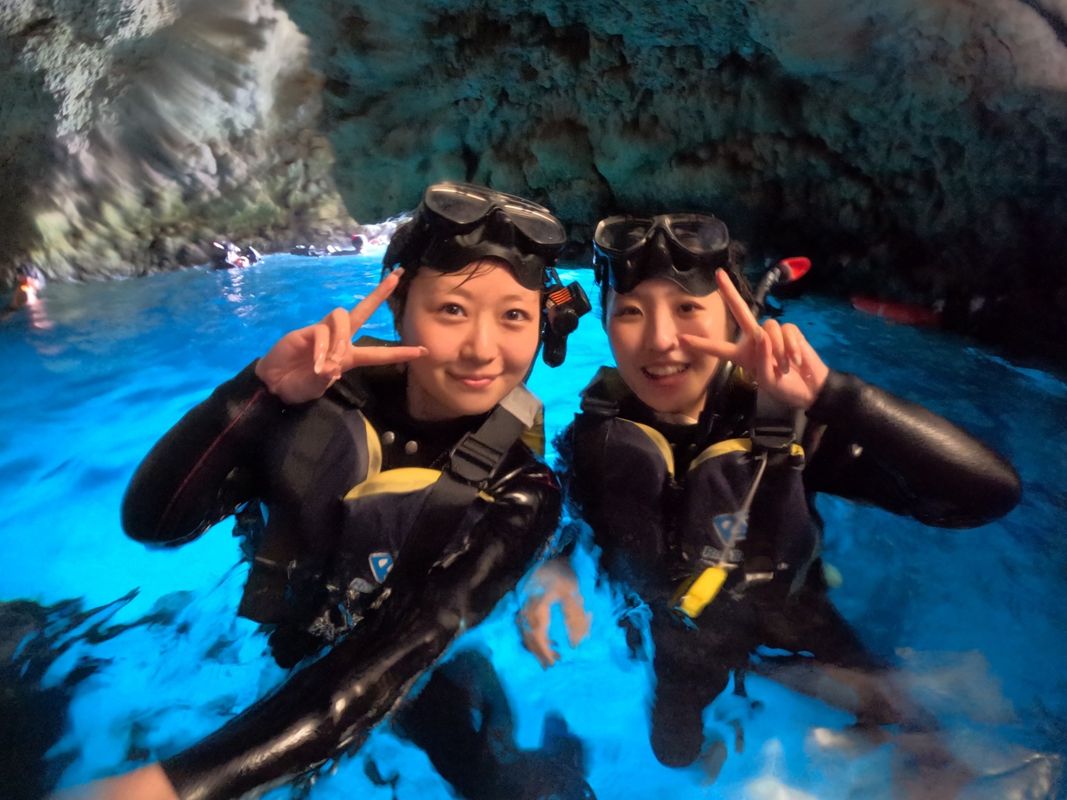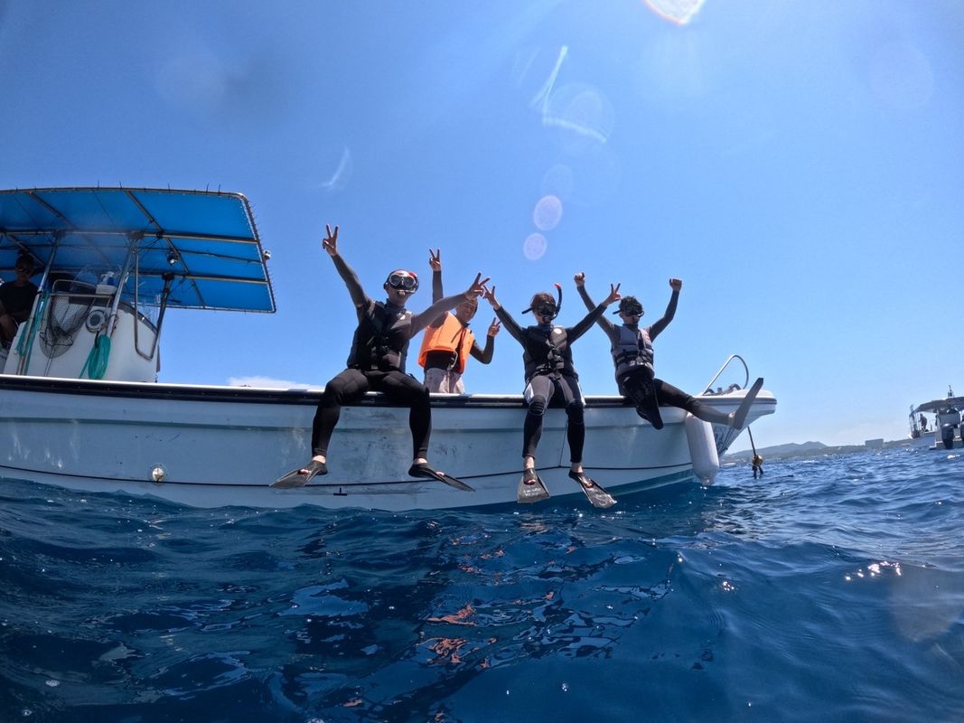 お店から3分!!港から5分!!ボートで行くから楽ちんツアー★お子様でも初めての方でも経験豊富なスタッフがしっかりサポート!!真栄田岬の駐車場にできる長い行列や階段ののぼりもなし!! 青の洞窟がある真栄田岬のすぐ近くにガラス張りのきれいな施設があり、温水シャワー、シャンプーなどをご準備してお待ちしております。その他更衣室やコインロッカー(別途100円)やパウダースペース、ドライヤーもございます。ツアー終了後は海が見えるテラスでウエルカムドリンクをご用意いたします。